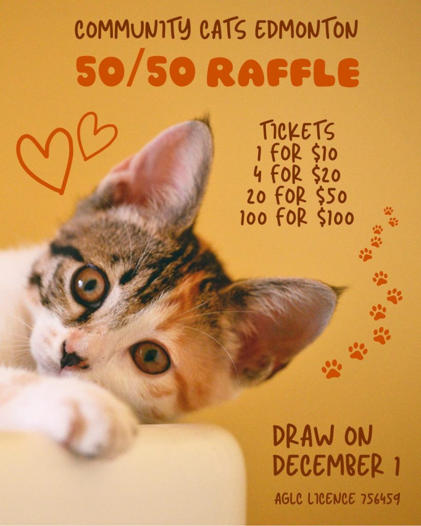 Our 50/50 raffle supports cats and kittens in our care, particularly vetting to prepare them for adoption!